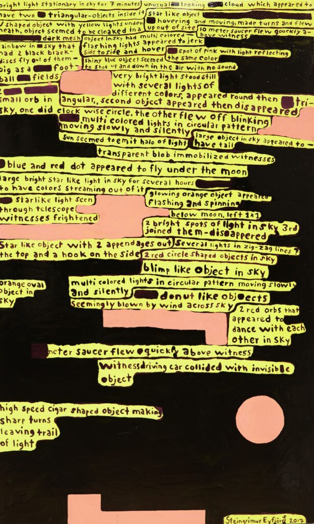 Four decades is a long time in the art world and that is how long Steingrímur Eyfjörð has engaged with a long stream of ideas and styles. He has held exhibitions and taken part in cooperative projects of various kinds, tackling subjects that range from the contemporary to the historical, presenting his thinking about life in general and art in particular. His work is about our perceptions, experiences and understanding. This is nothing new in art – one might even say that this is the primary concern of all artists – but Eyfjörð’s exhibitions stand somewhat apart because he insist on turning on always turning up many and often contradictory answers to every question. He thinks – and sometimes obsesses – on his subjects and tries to look at them from different perspectives. He often seeks and quotes the opinion of others, even engaging spirit mediums to canvass opinions from “beyond the veil”. With this research method we find that even the most ordinary things appear different depending on one’s perspective. Sometimes it is as if people are not seeing the same thing at all and reality recedes into a mess of ideas, misperceptions and misunderstandings. We see what we want to see or would like to see and our attempts to understand our world lead to endless misrepresentations.