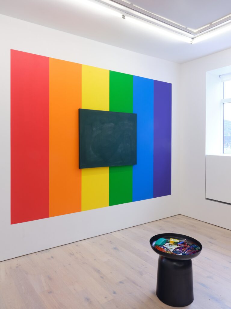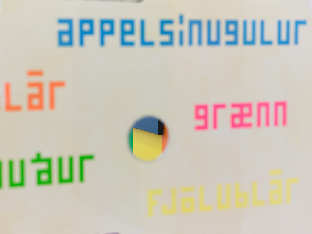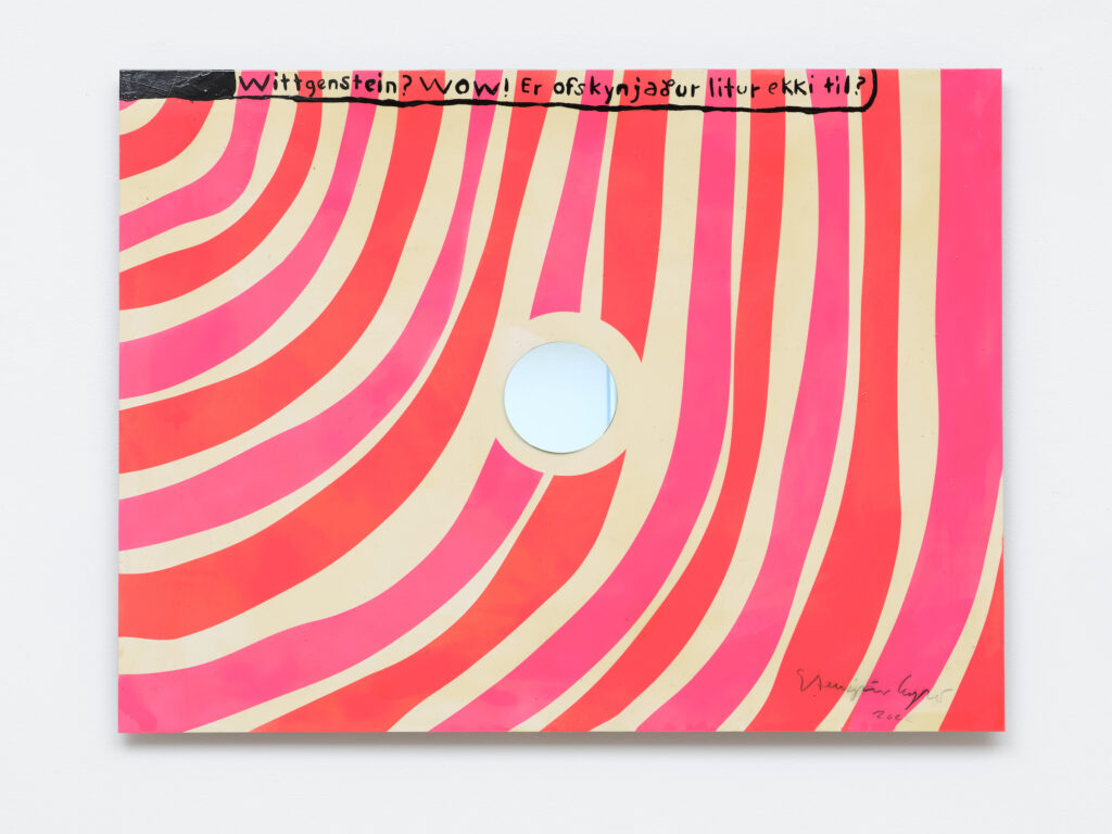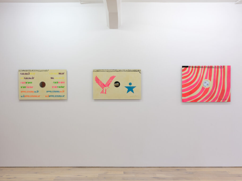 In the works of the exhibition, made in 2021-22, Eyfjörð is in dialogue with Wittgenstein, with Art itself as a phenomenon and with himself, about the fourth dimension, the perception of colour and the imagination as a force increasingly activated by humans through the growing development of visual technology. In many of his colourful works, there is a blindspot in the middle, as representative of the invisible colours and that which cannot be verbally described, and which none of us perceive in the same way.