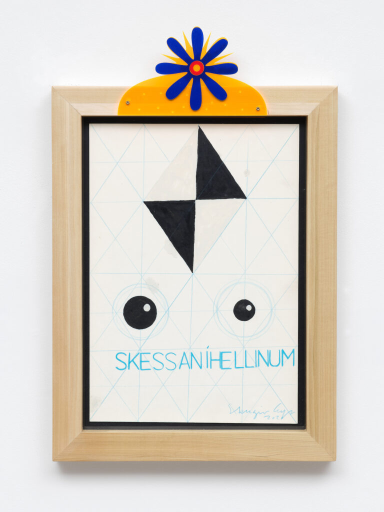 In all these conversations, the artist himself sets the tone and contributes vast knowledge, which he has gathered in an exceptionally unbiased spirit, free from all hierarchy and linear formality. In his search for knowledge and with sharp processing of the epistemology of complex systems, Eyfjörð regularly sheds his skin, metamorphoses and leaves behind the weight of preconceived ideas, accepted values and his own expectations and those of others. He simply looks at a blue-coloured object and gives himself permission to think “blue”, then possibly connects the concept to the Indigo of Indian symbolism or the blue-hued distance in Arabic poetry, so that the blue object becomes the Third Eye – universal consciousness, the goddess Kali, The Song of Songs, Parsifal and the the Holy Grail, the Sea and the Cod War, cowboy hats and the green cake, the ogre Grýla, Venus or an invisible sheep.