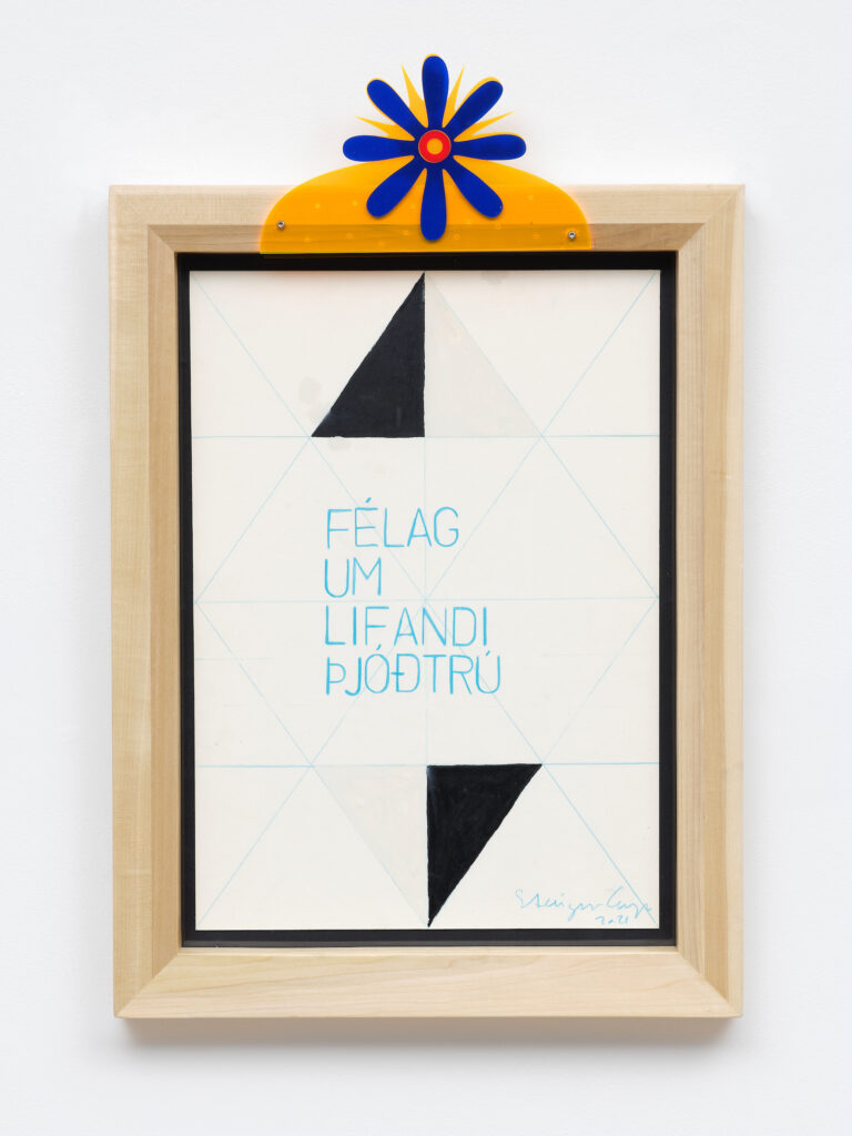 In his art, artist Steingrímur Eyfjörð is in constant dialogue with people, living and passed, with himself and with his own artworks. He speaks to his artworks in the form of text within the frame while creating them and sometimes directs questions to or refers to conversations with his friends through text. The works respond to him and are even self-critical and sometimes self-deprecating. The reverberations of these dialogues then often continue in the unfinished works of this inquisitive artist. The source of this internal conversation is his belief in the unexplored possibilities of creating connections between various contributions to the knowledge society.